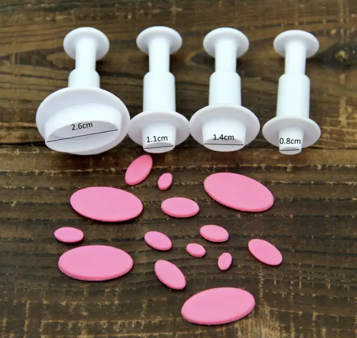 Oval plunger set used for decorating cakes and cupcakes